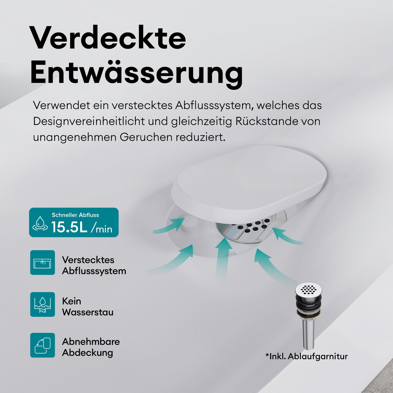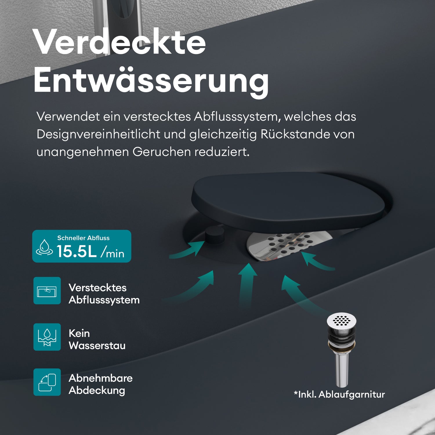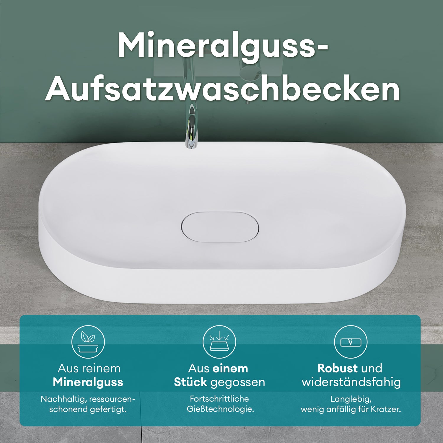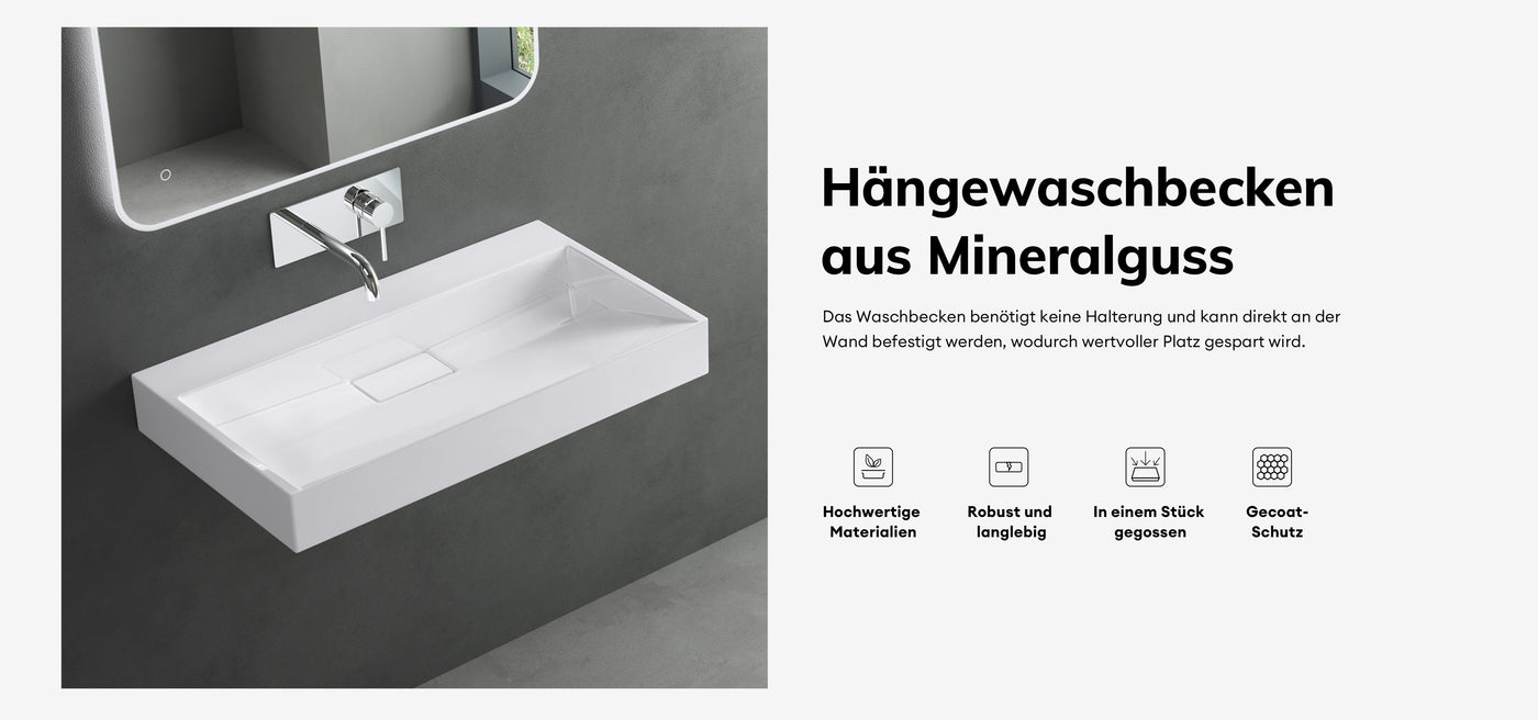 Nuestra lavabo fue fabricado con cerámica sanitaria de alta calidad. El material es robusto y, por lo tanto, tiene una larga vida útil.