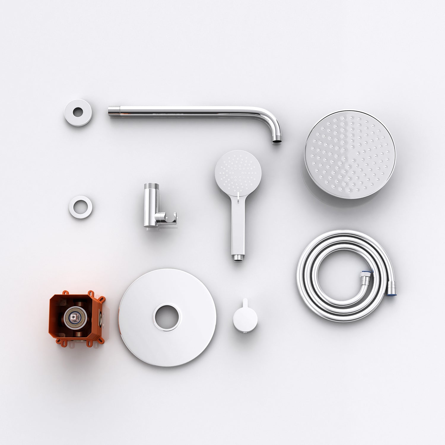 Das Set beinhaltet einen Regenduschkopf, eine Handbrause und einen Einhebelmischer. Der knickfeste Brauseschlauch mit einer Länge von 1,5m sorgt für ein bequemes Duschen.