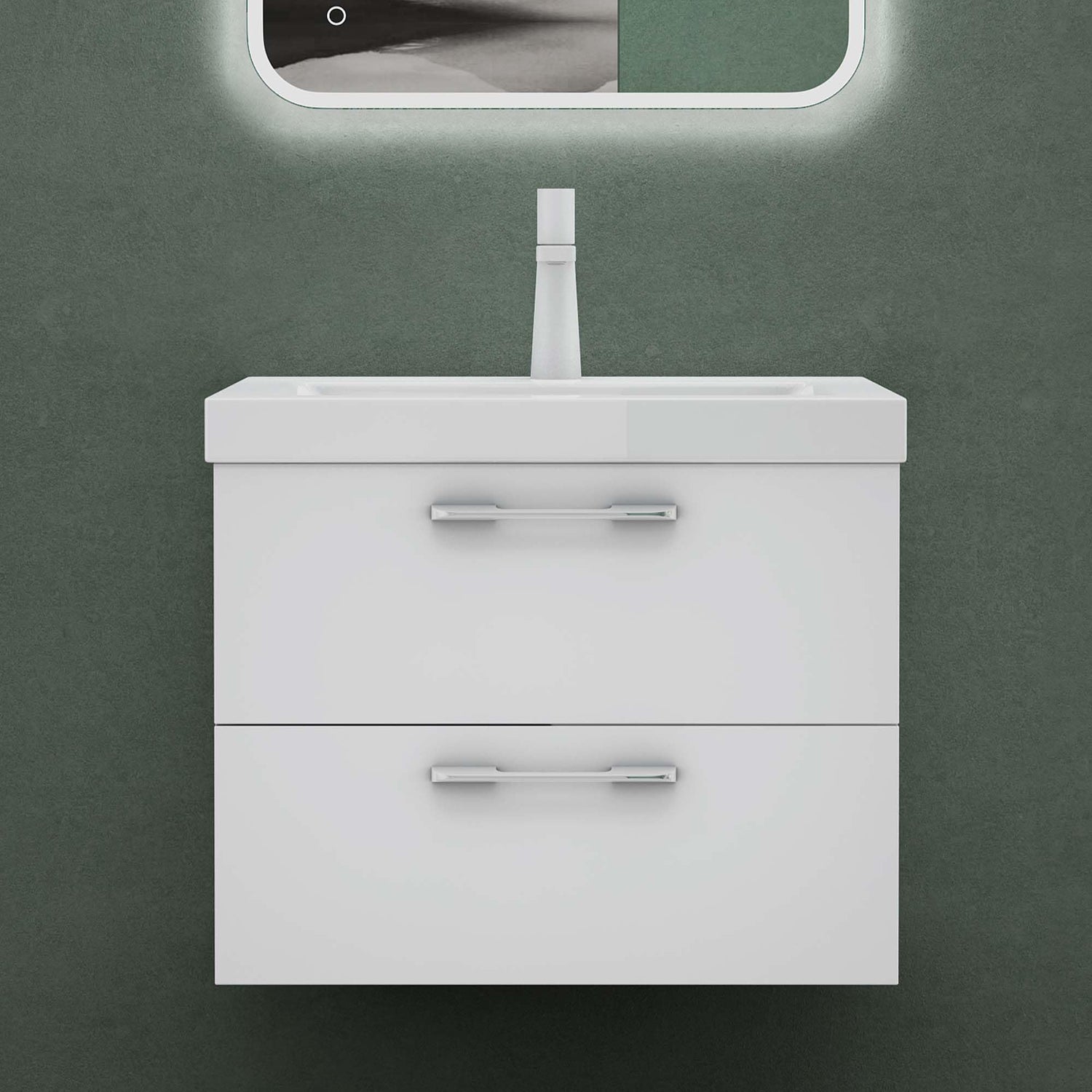 glasvilla Badezimmermöbel 2-teilig: Waschbecken und Unterschrank montagefertig Bavaria - Glänzend Weiß / mit LED- Spiegel ist auf Lager und wird versandt, sobald es wieder verfügbar ist