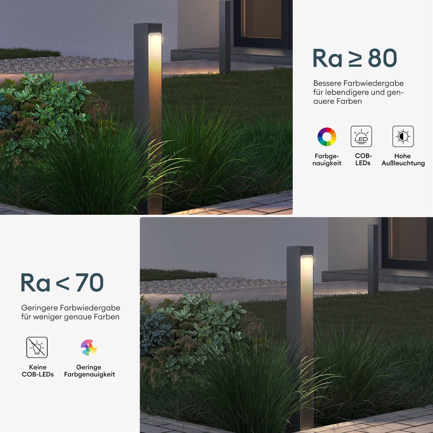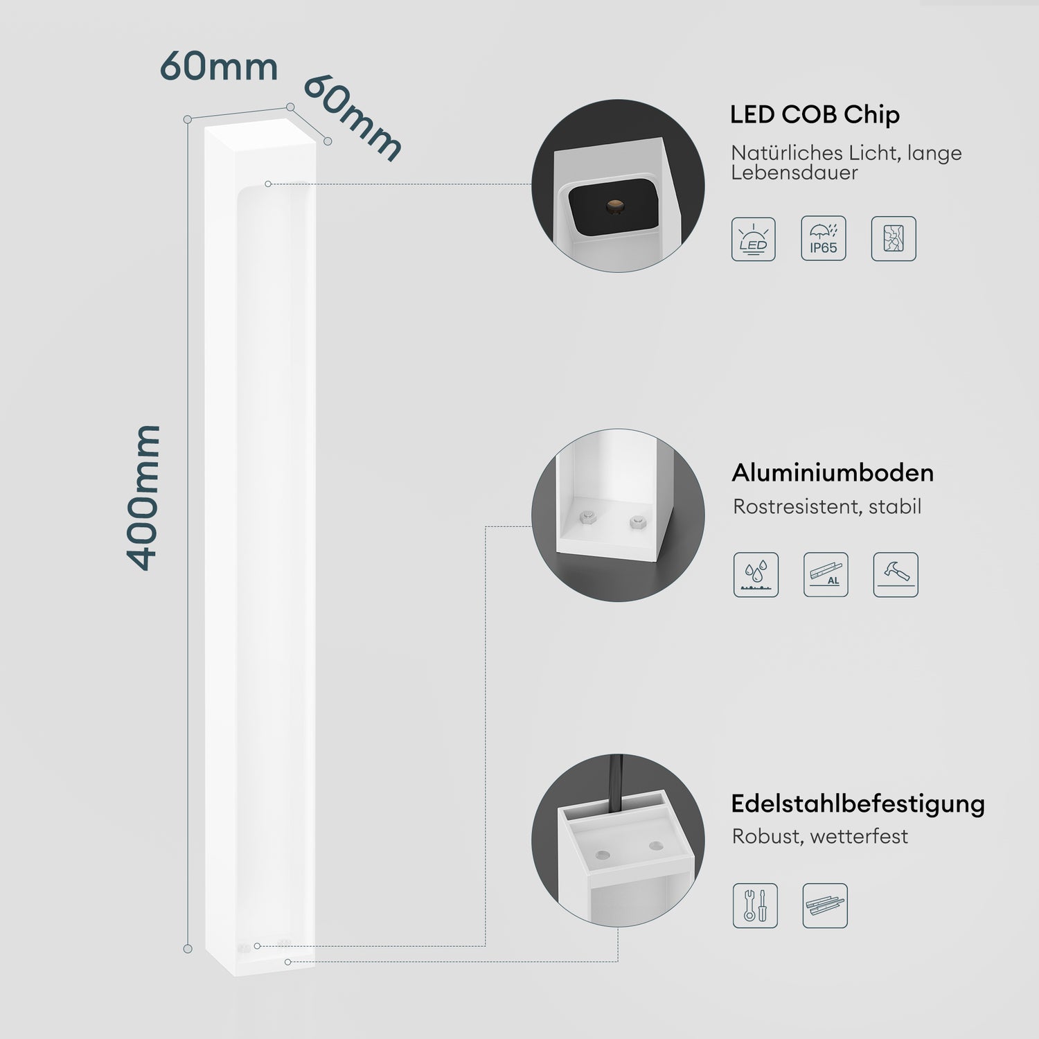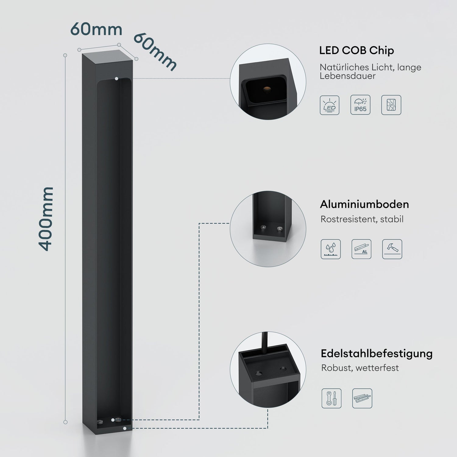 - Energiesparend und wetterfest: LED-Lichtquelle mit geringer Wattzahl, aber hoher Leuchtkraft. IP65-zertifiziert, widersteht extremen Wetterbedingungen.
