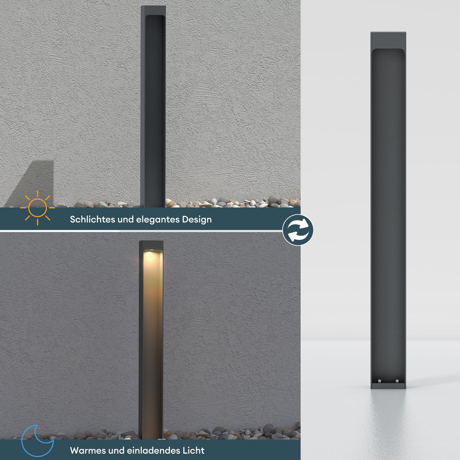 - Weitreichendes und warmes Licht: Unsere Außenlampen strahlen mit einer Farbtemperatur von 3000K ein gemütliches Licht aus, welches eine angenehme Atmosphäre schafft und gleichzeitig eine weite Fläche erhellt.
