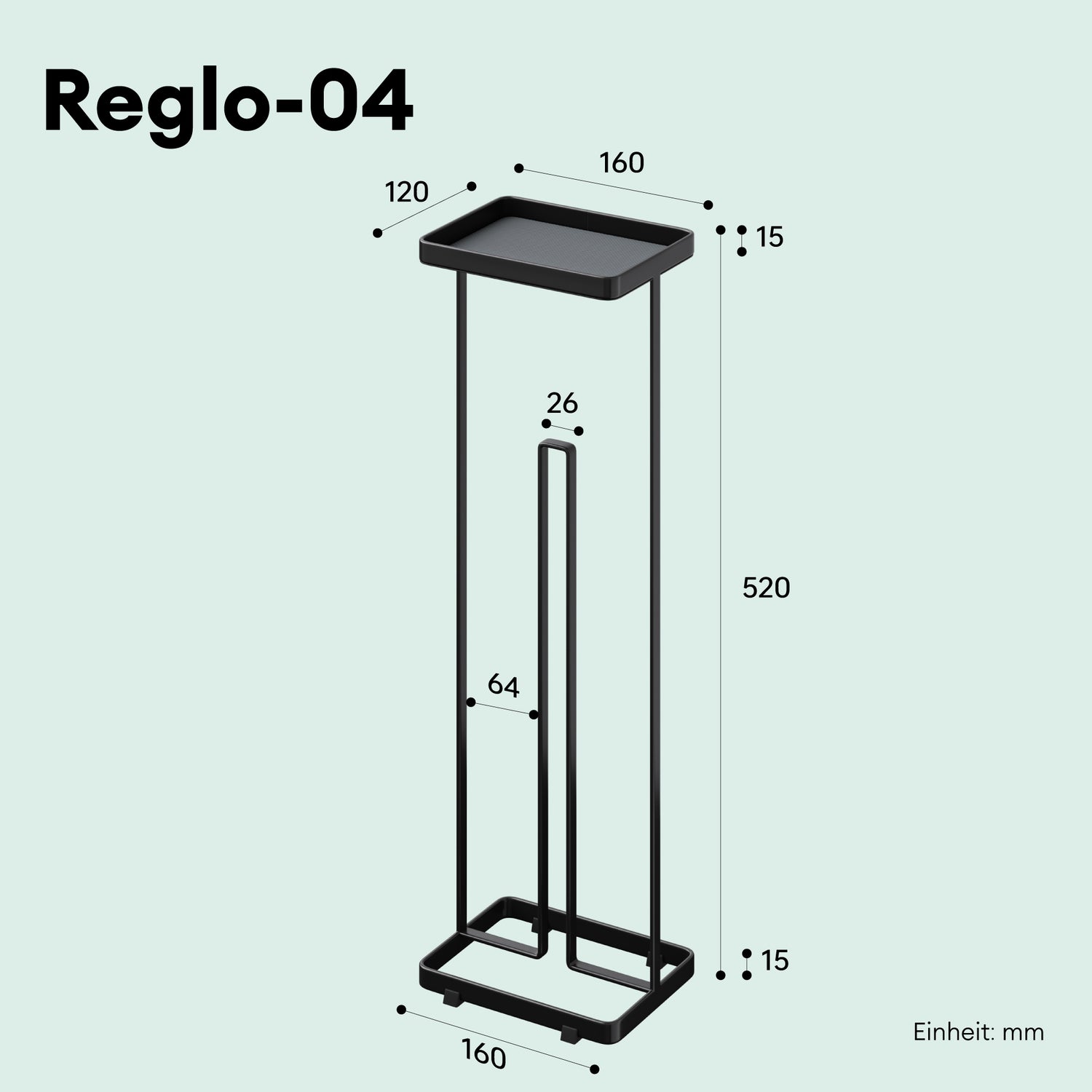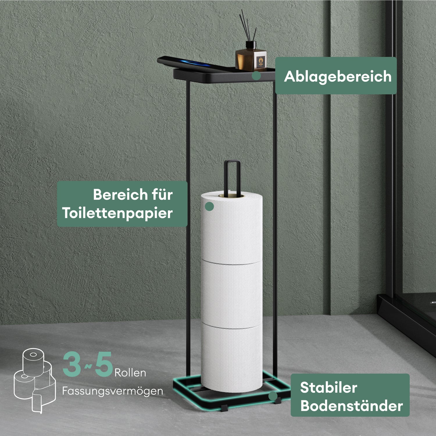 • Design Toilettenpapierhalter stehend: Maße(BxTxH): 160x120x520 mm |  3~5 Rollen Fassungsvermögen | Max. Rollen-Durchmesser: 154mm