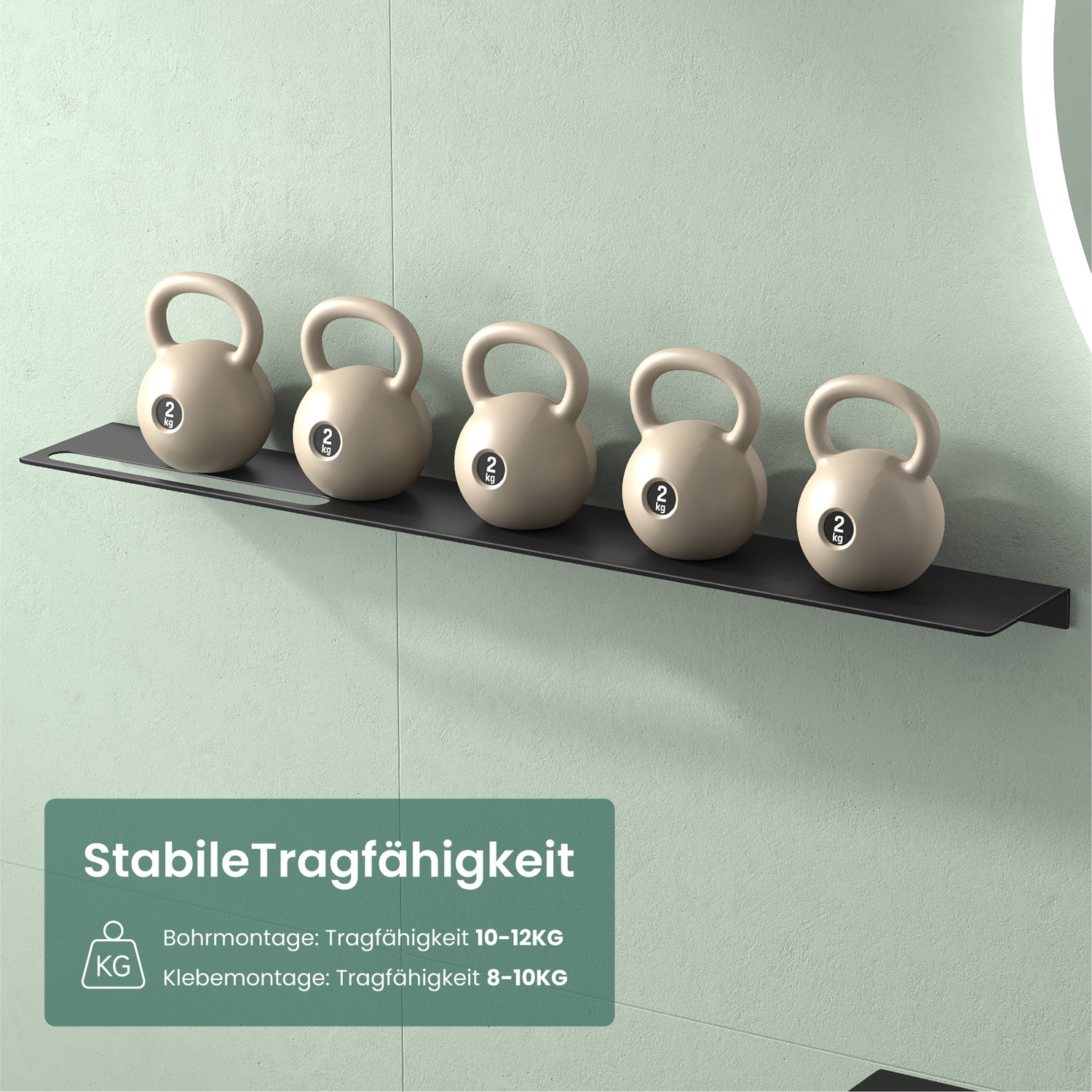 - Hohe Tragfähigkeit: Wahlweise Klebemontage (8–10 kg) oder Bohrmontage (10–12 kg). Alle erforderlichen Montagematerialien inklusive starkem Kleber sind im Lieferumfang enthalten.