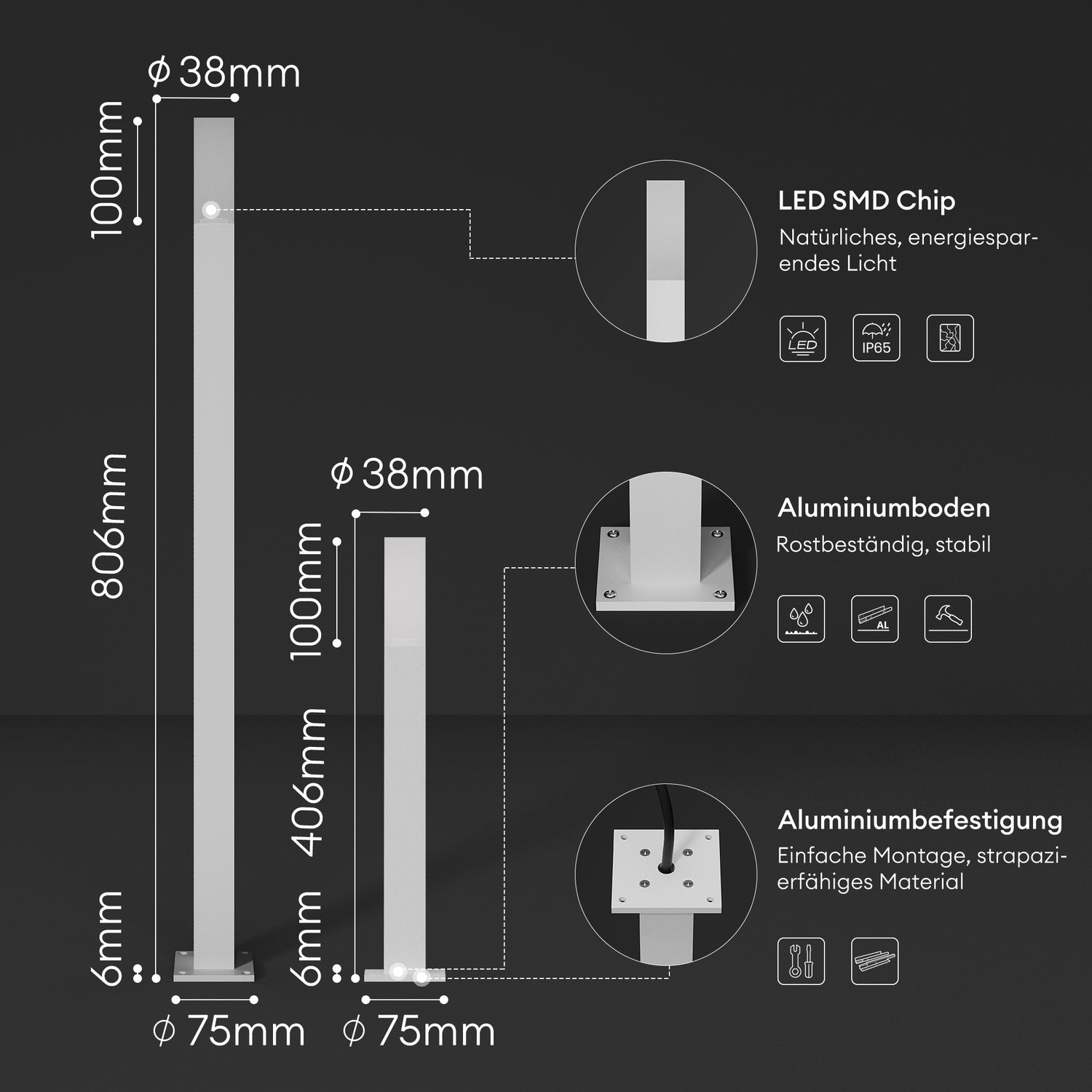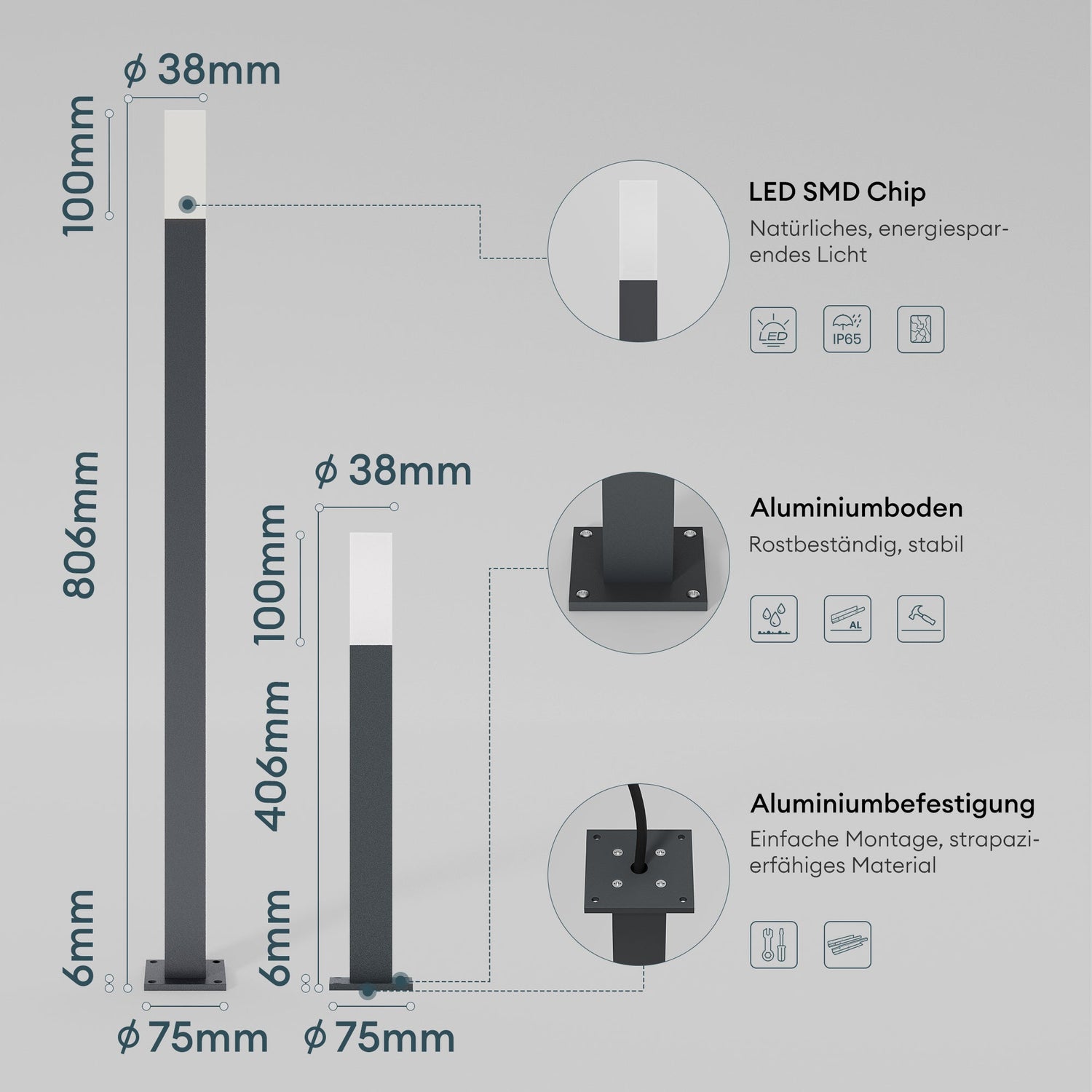 glasvilla Außenleuchte IP65 Wegeleuchte Außen | Pollerleuchte für Garten, 3000K Stehlampe Gartenlampe | Außenlampe Standleuchte 3W Deus Lumina