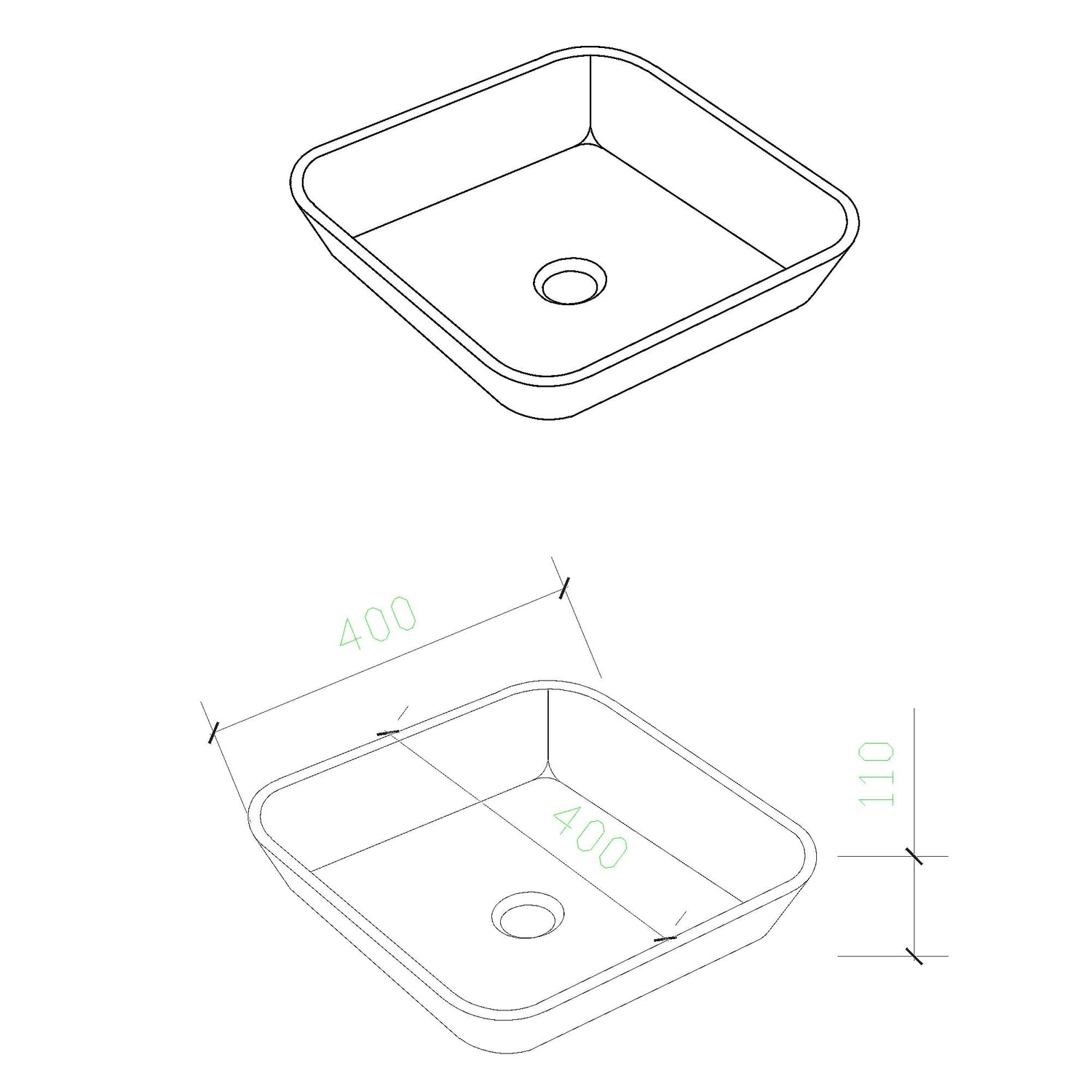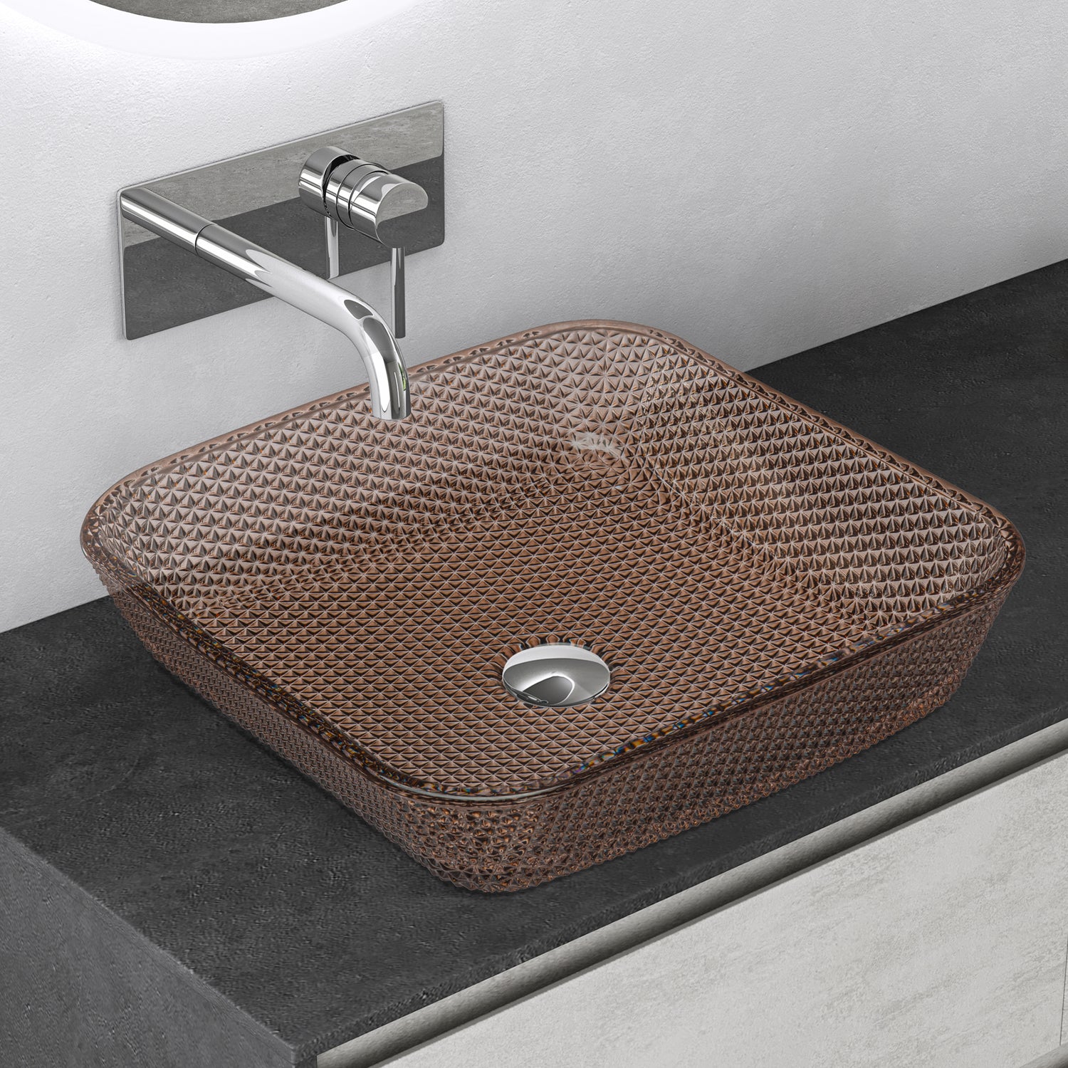 Lavabo en verre à poser Glasvilla, vasque rectangulaire, dimensions L x P x H : 40 x 40 x 11 cm (Minerva03)