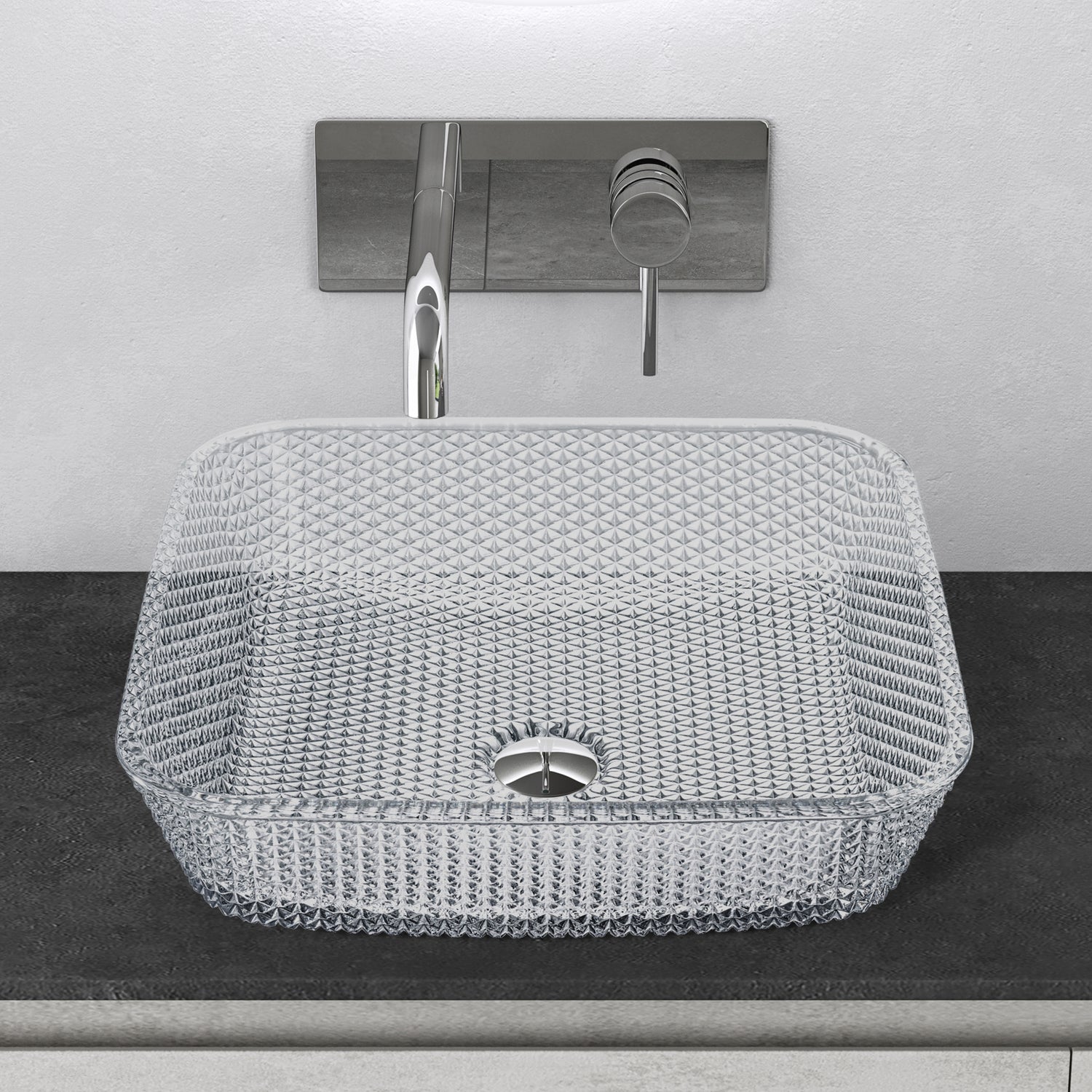 Lavabo en verre à poser Glasvilla, vasque rectangulaire, dimensions L x P x H : 40 x 40 x 11 cm (Minerva03) - Transparent est en rupture de stock et sera expédié dès qu’il sera de retour en stock.