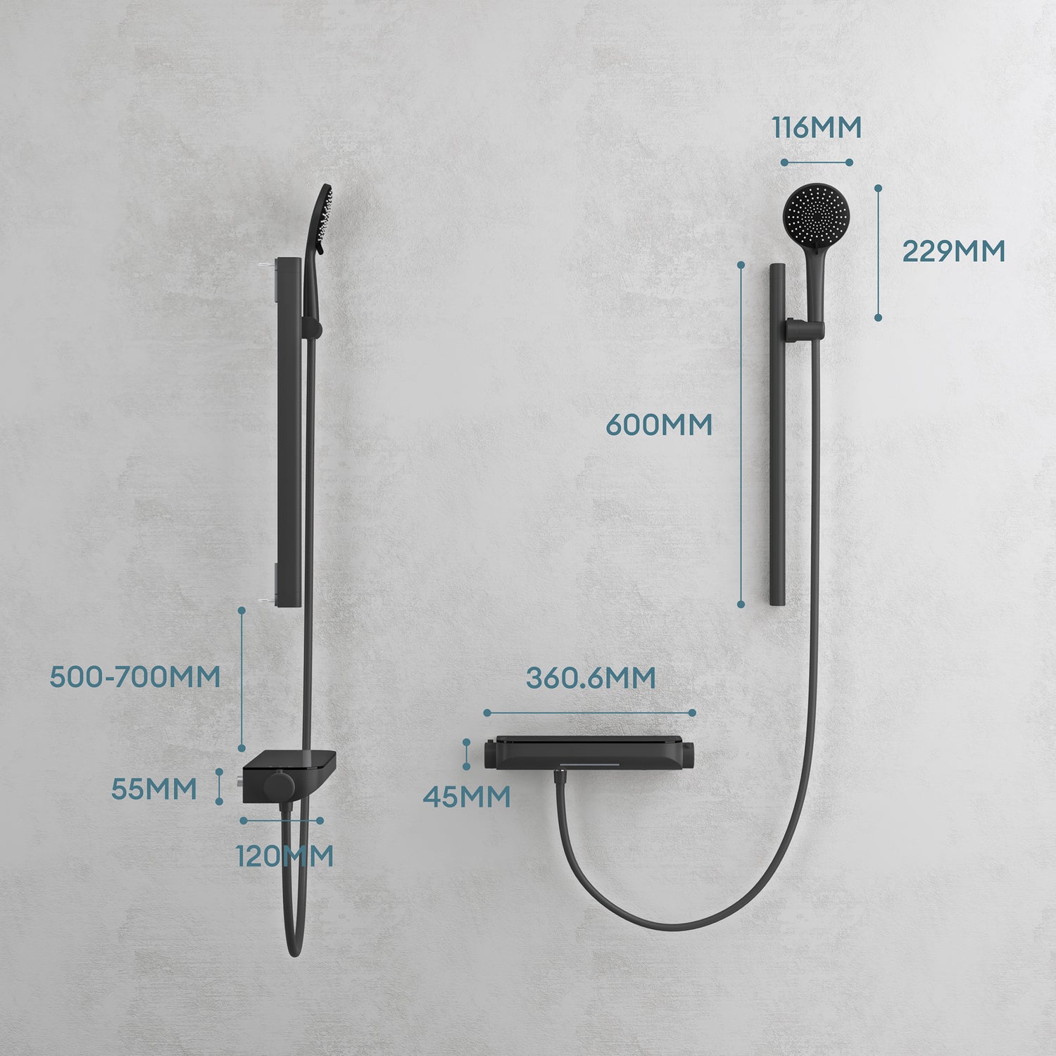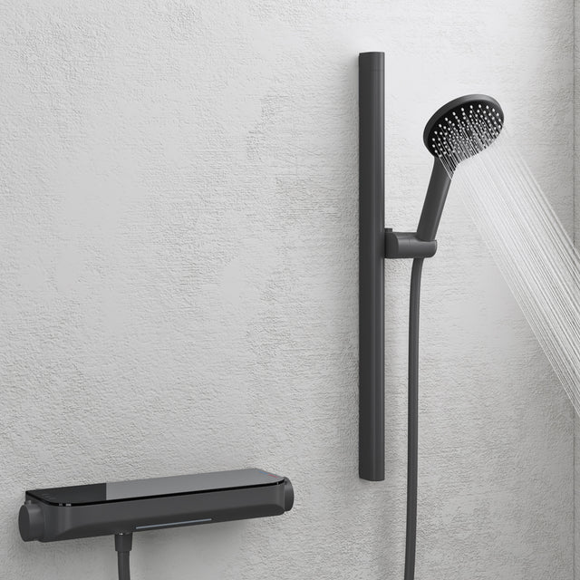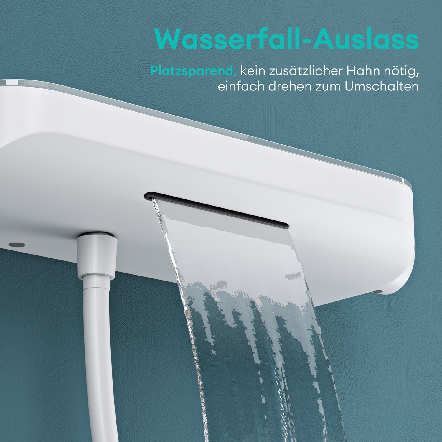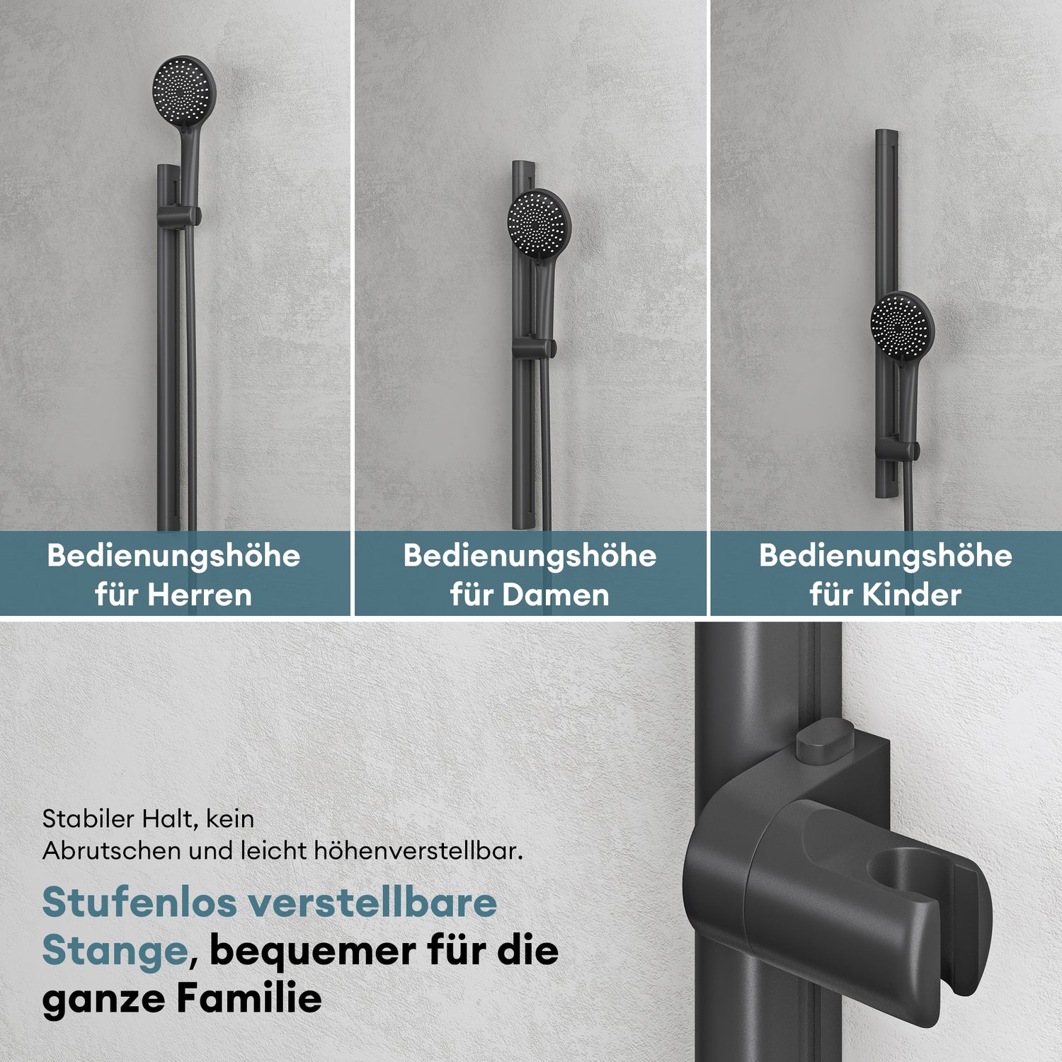Système de douche Glasvilla avec thermostat, kit de robinetterie complet avec verrouillage de sécurité, 3 jets, pommeau de douche réglable en hauteur avec bec inférieur en laiton, système de douche 9