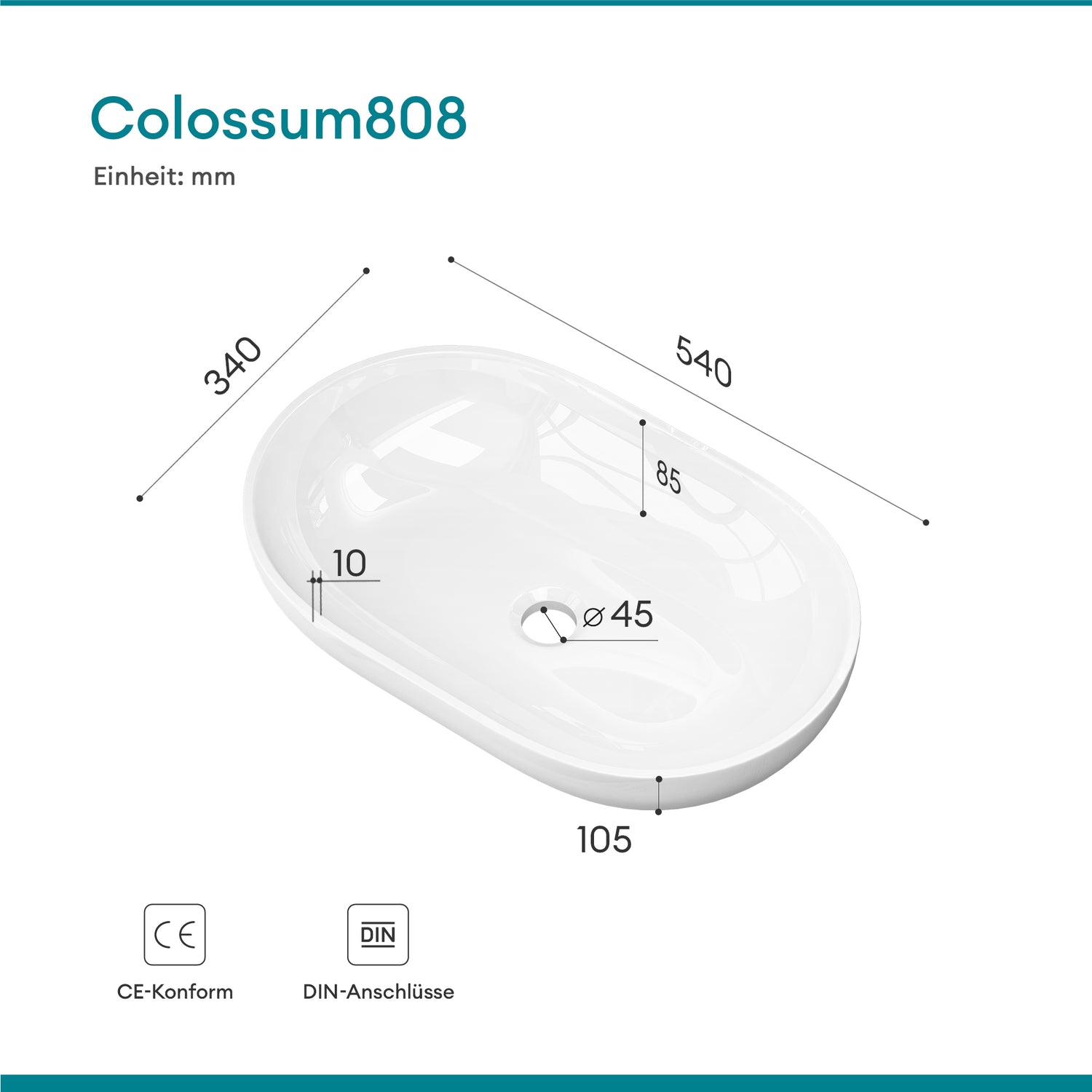 Lavabo Glasvilla, lavabo à poser en fonte minérale, vasque Col808