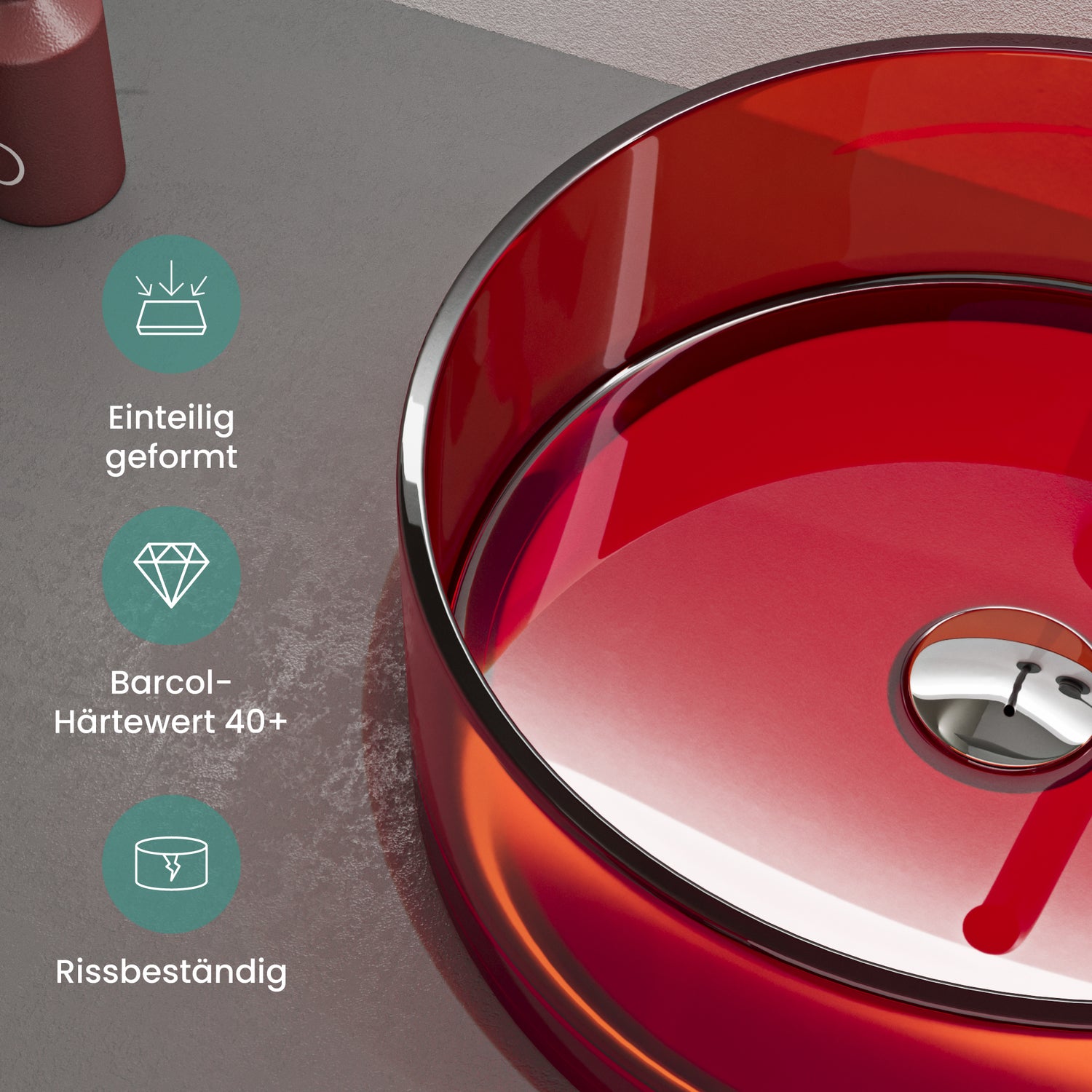 El lavabo está fabricado en resina segura y resistente al calor, con alta estabilidad de color y un tacto especialmente agradable.