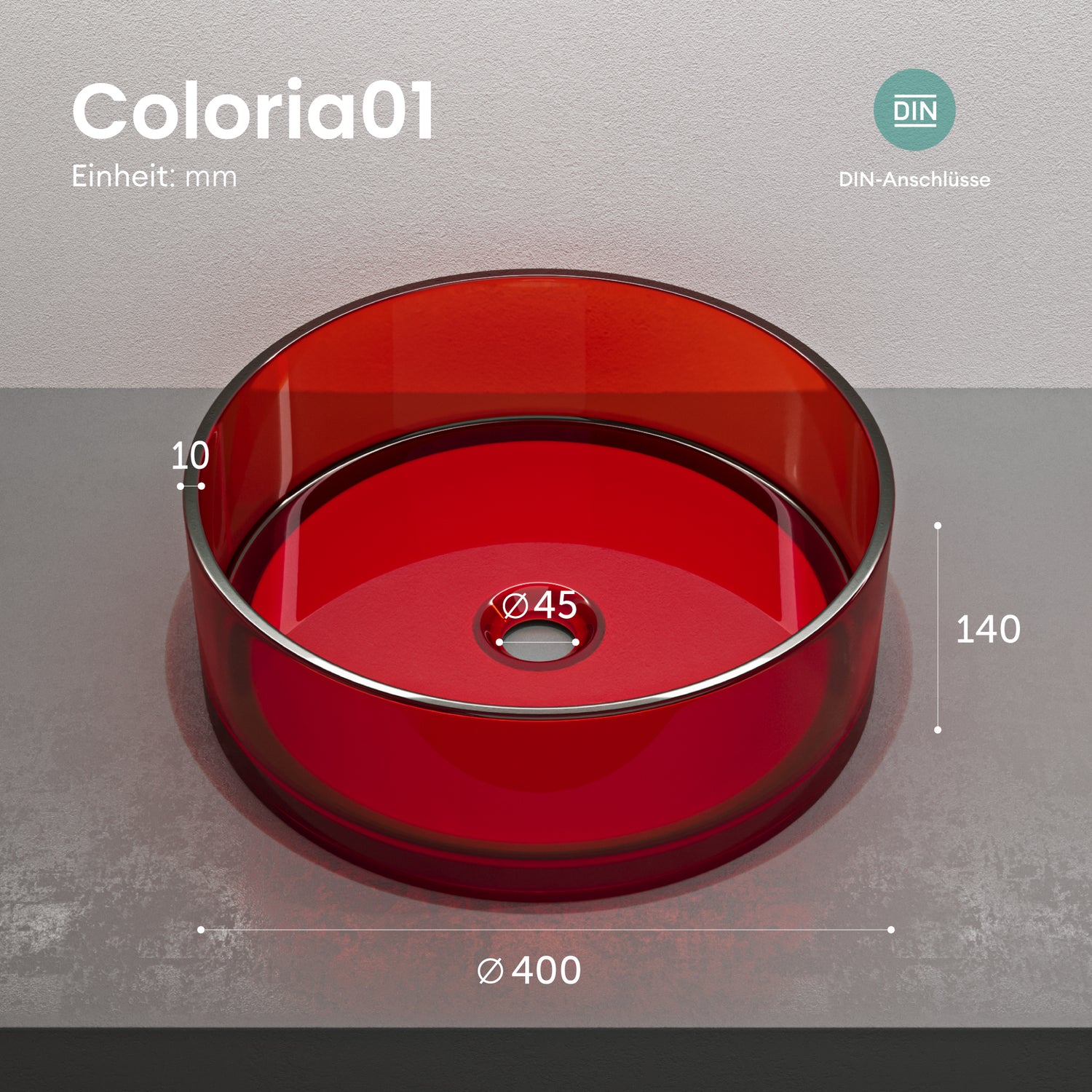 El Glasvilla Coloria01 es un lavabo sobre encimera redondo, fabricado en resina de alta calidad con una delicada transparencia natural.