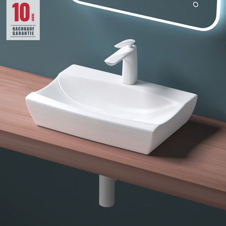 Lavabo Glasvilla, lavabo suspendu, lavabo à poser en matériau minéral moulé, Col810
