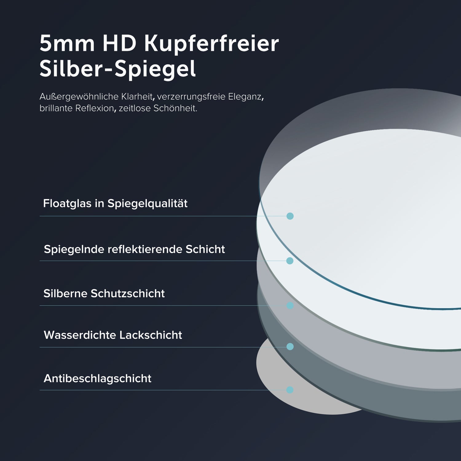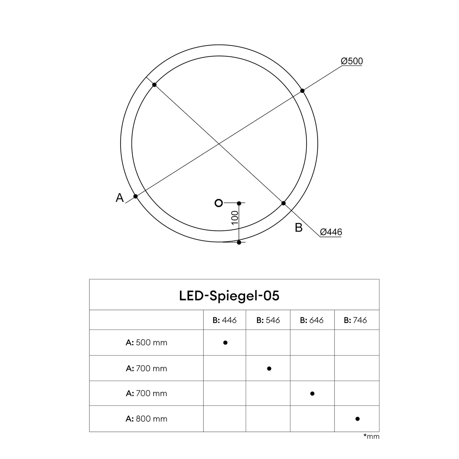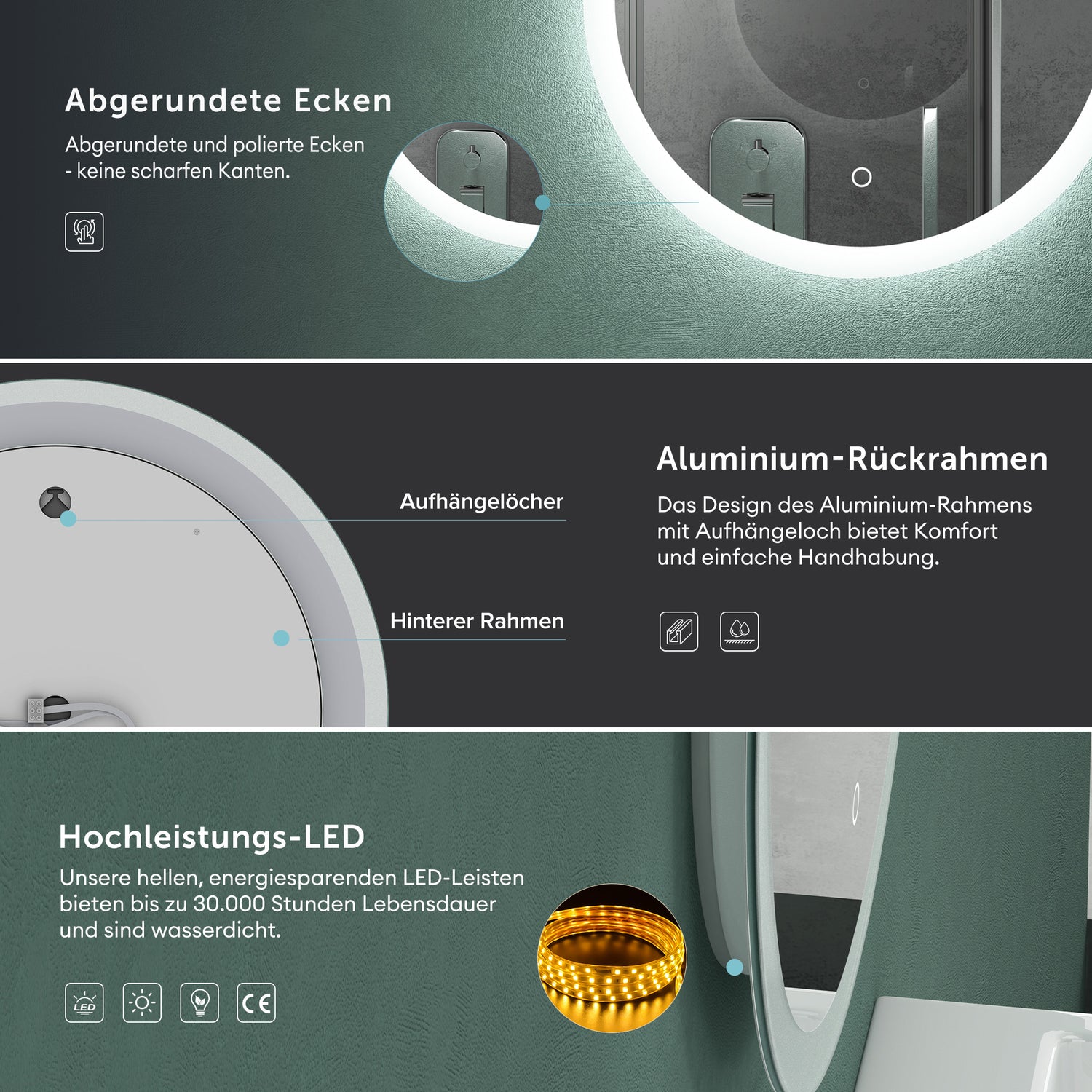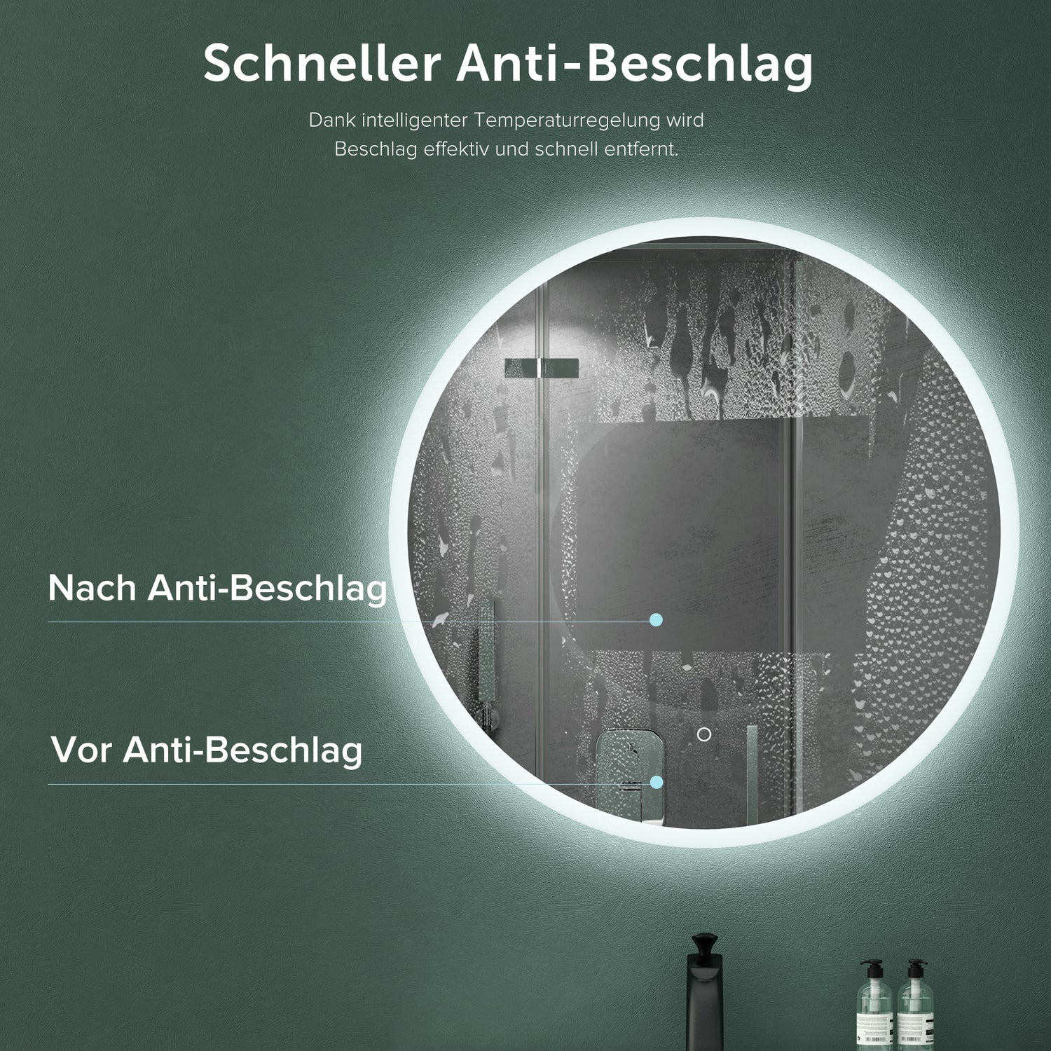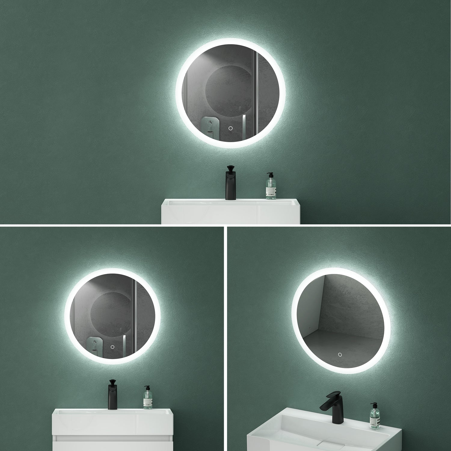 glasvilla Miroir Mural de Salle de Bain Miroir Lumineux Rond à LED Miroir de Salle de Bain à LED avec Interrupteur Tactile Couche Antibuée LED-Spiegel 05