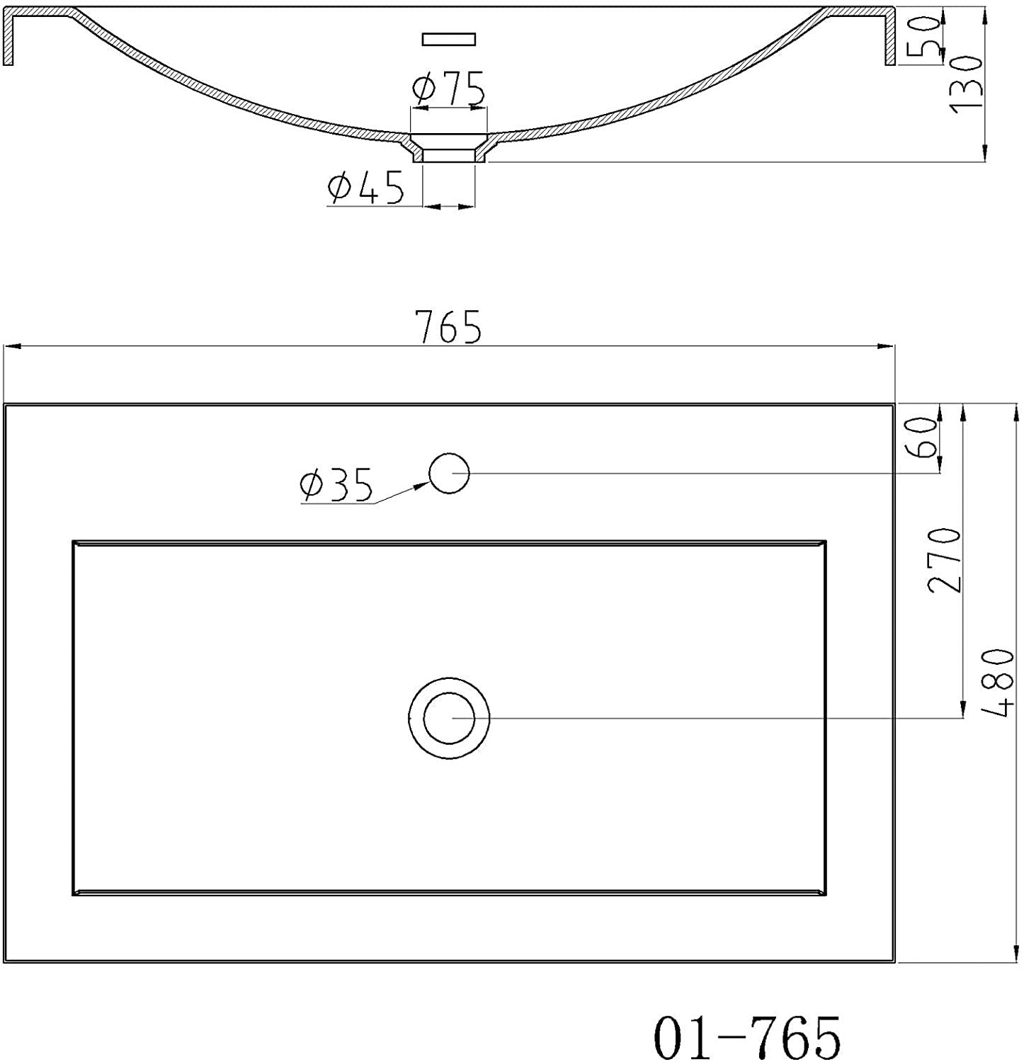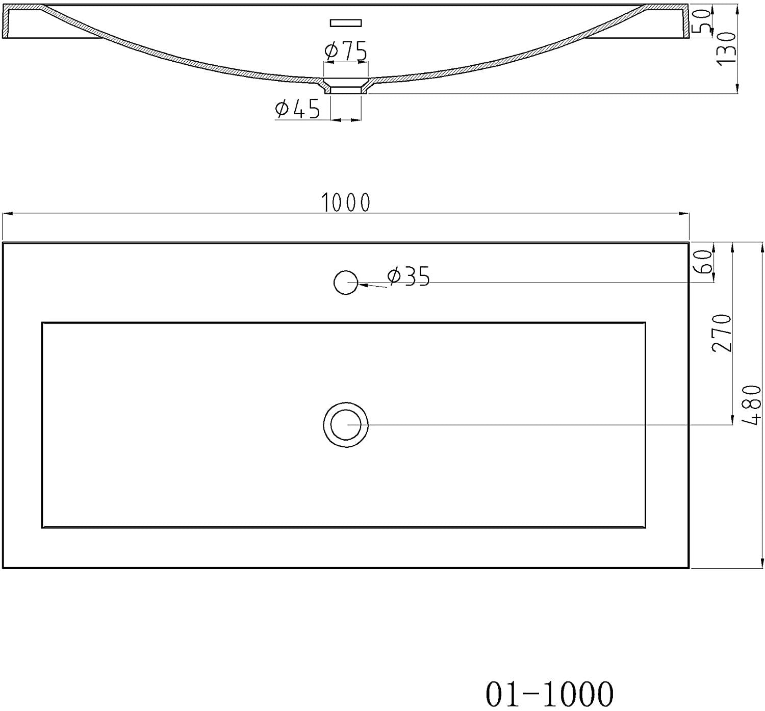 Lavabo Glasvilla, vasque encastrée, meuble-lavabo, en fonte minérale, rectangulaire, 1 trou de robinetterie, avec trop-plein, Col01