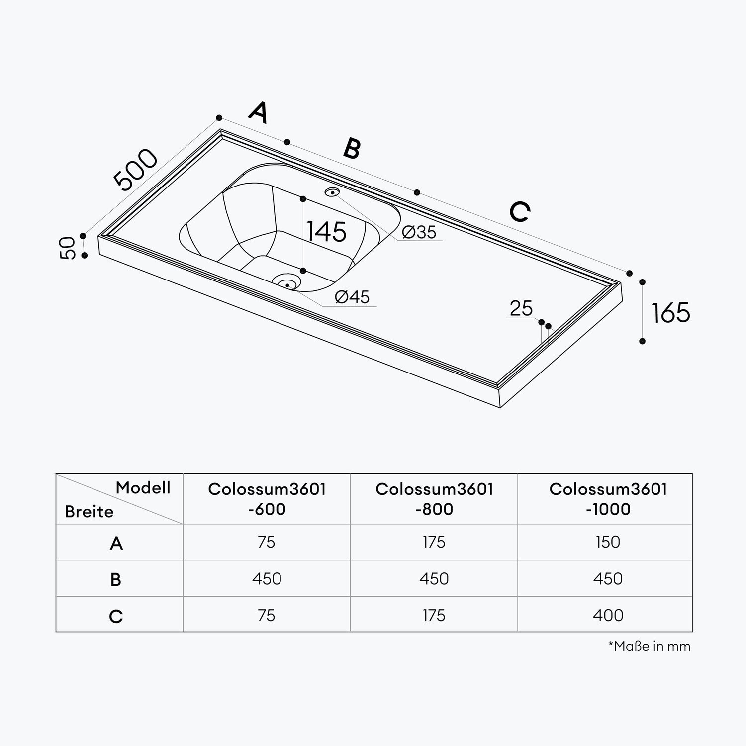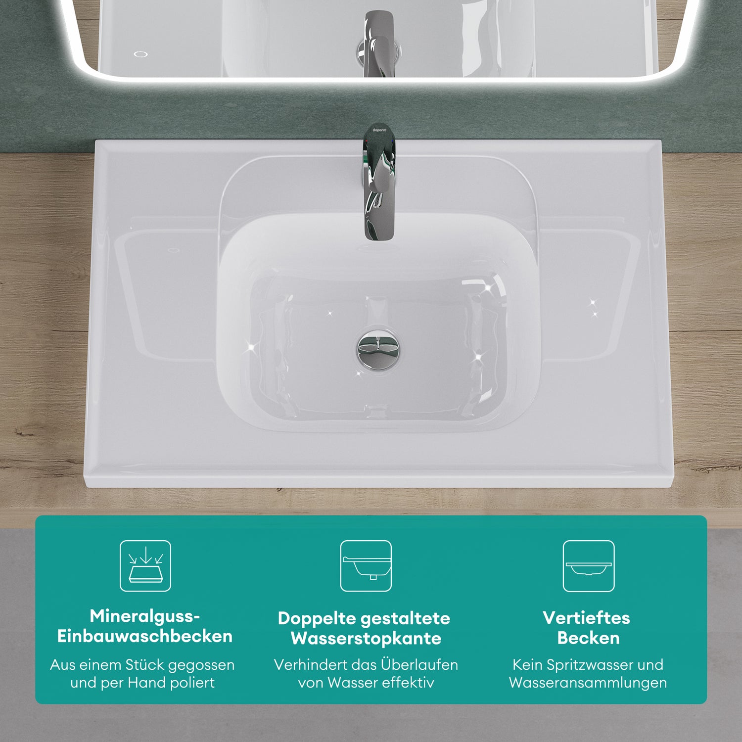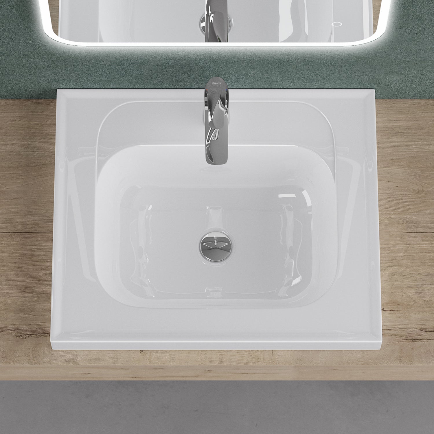Lavabo encastré Glasvilla blanc brillant, meuble vasque rectangulaire en fonte minérale Col3601