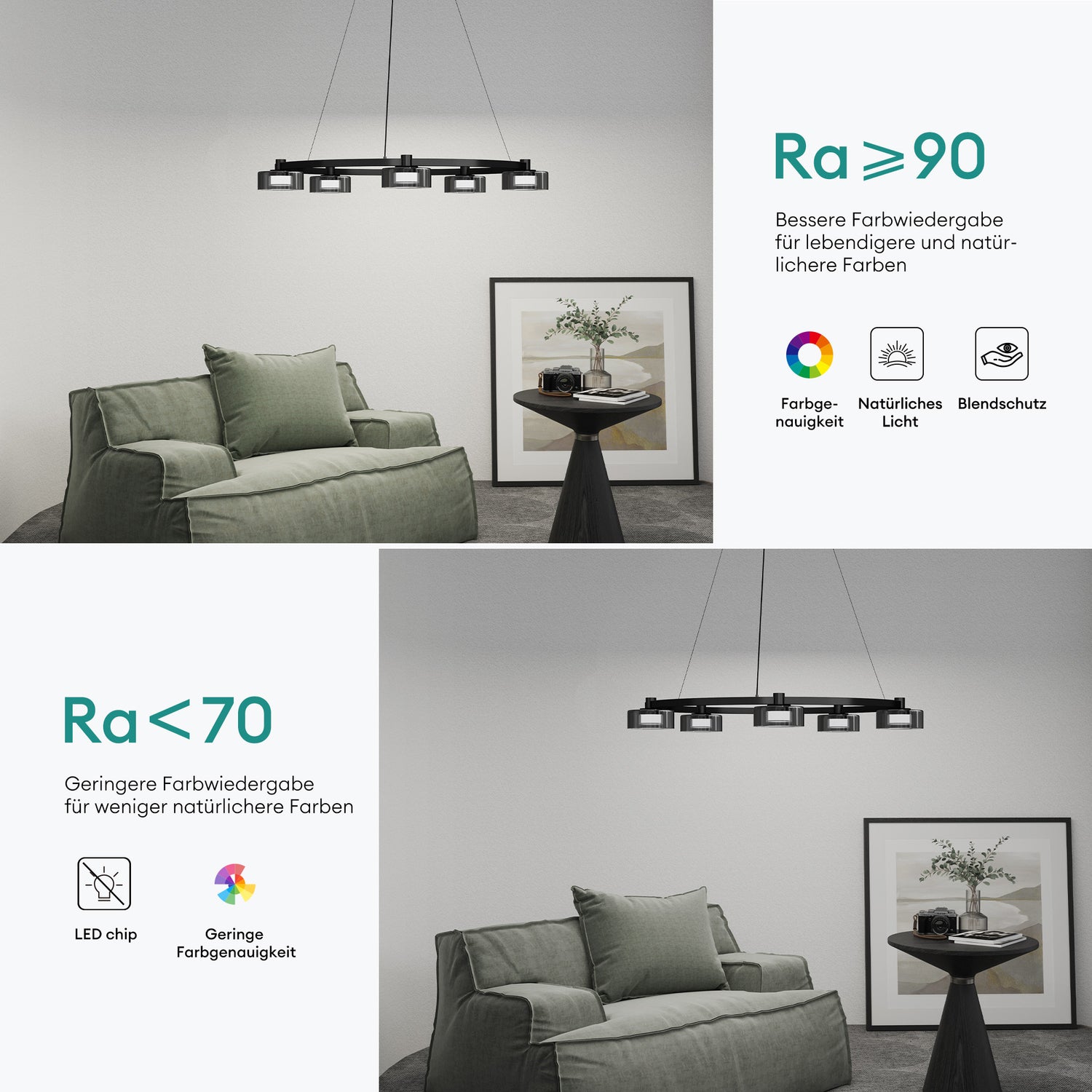 • L'apparecchio con valore RA > 80 fornisce un'illuminazione naturale e autentica, che riproduce i colori in modo vivido e preciso.