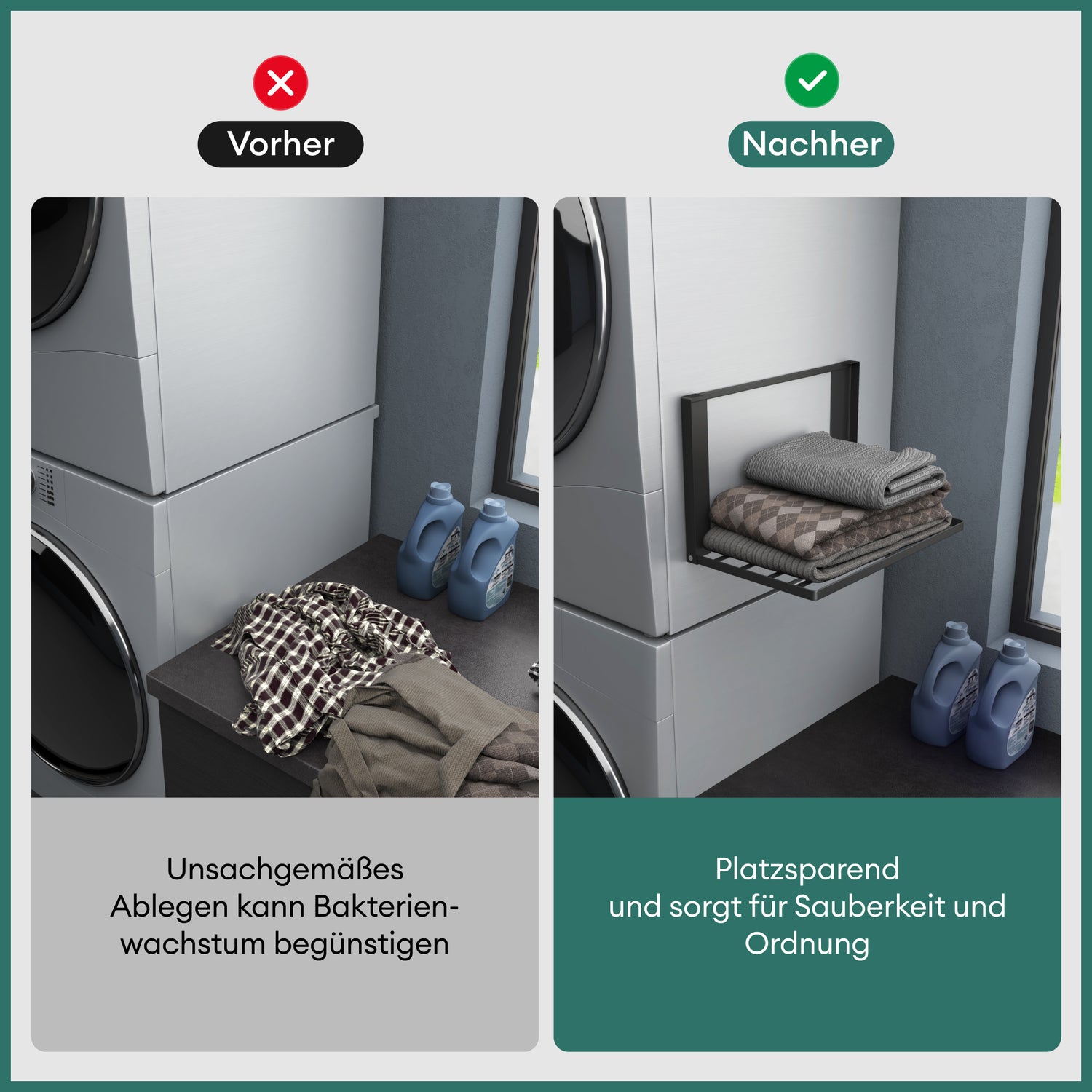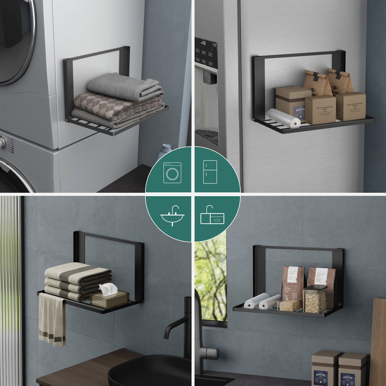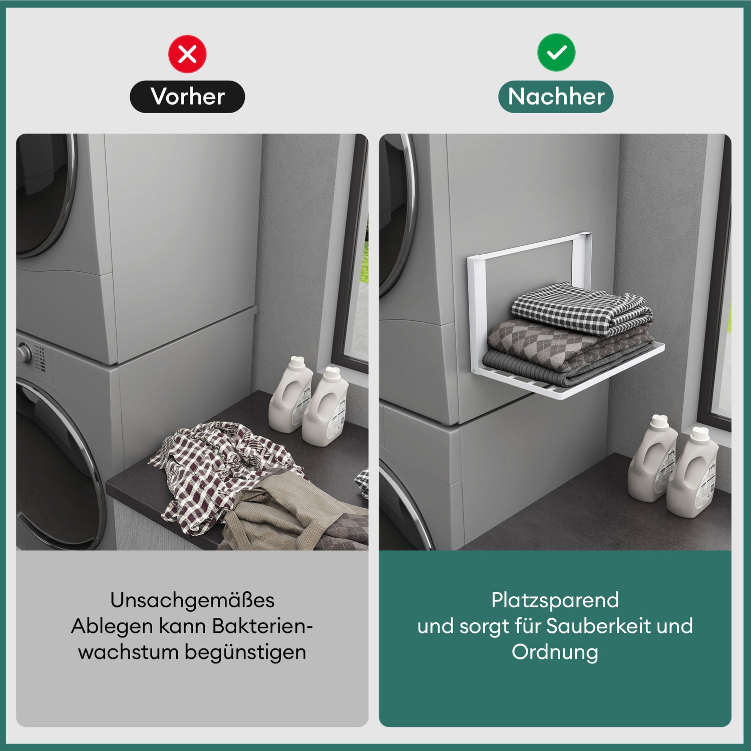 glasvolla Mensola Pieghevole per Lavatrice 41x25cm, Mensola Magnetica Lavatrice in Acciaio al Carbonio, Mensola da Parete Multifunzionale per Bagno e Cucina Folda-01