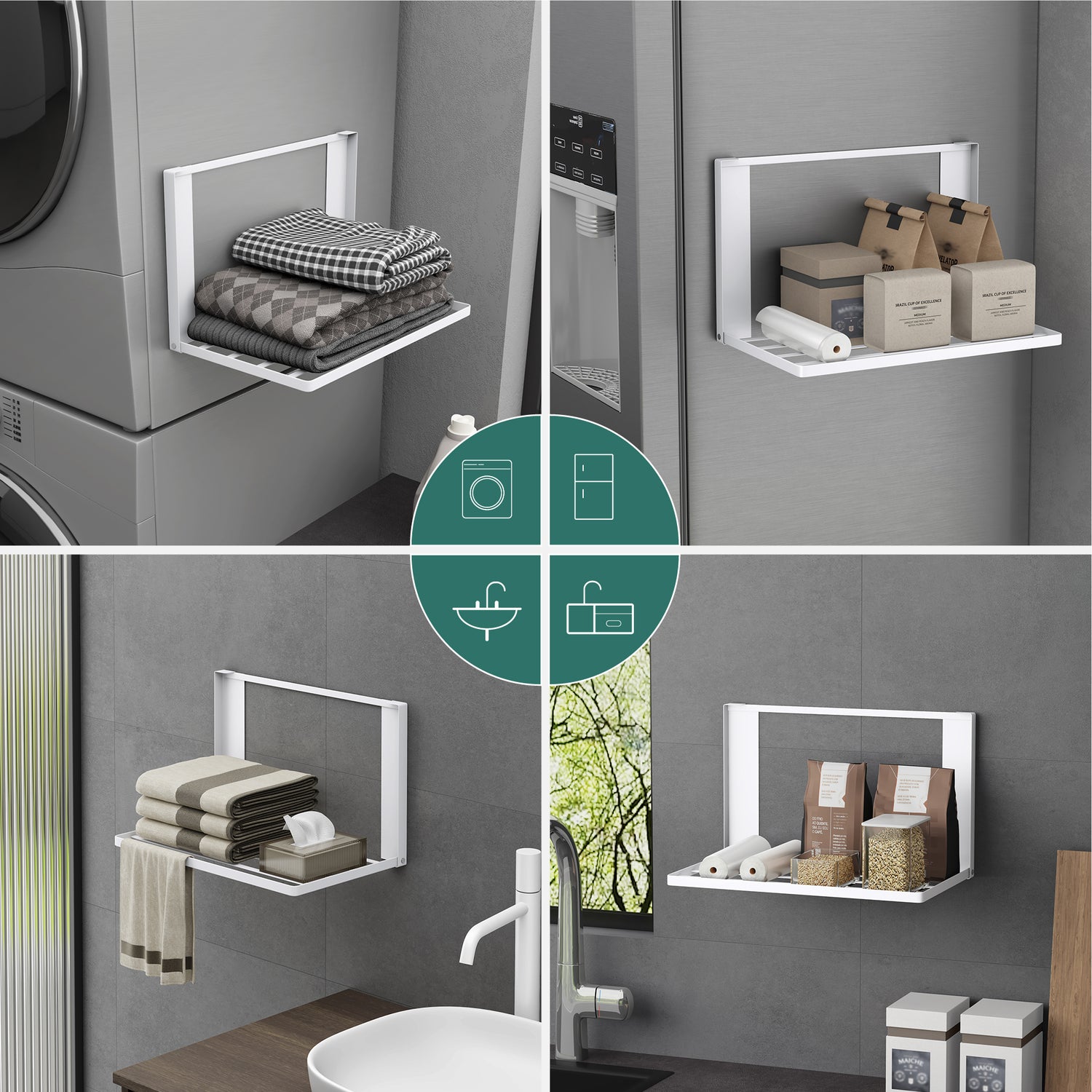 - MULTIUSO: Questa mensola a muro pieghevole può essere utilizzato in cucina, bagno, lavanderia. Perfetto per riporre asciugamani da bagno, spugne da bagno, vestiti ecc.