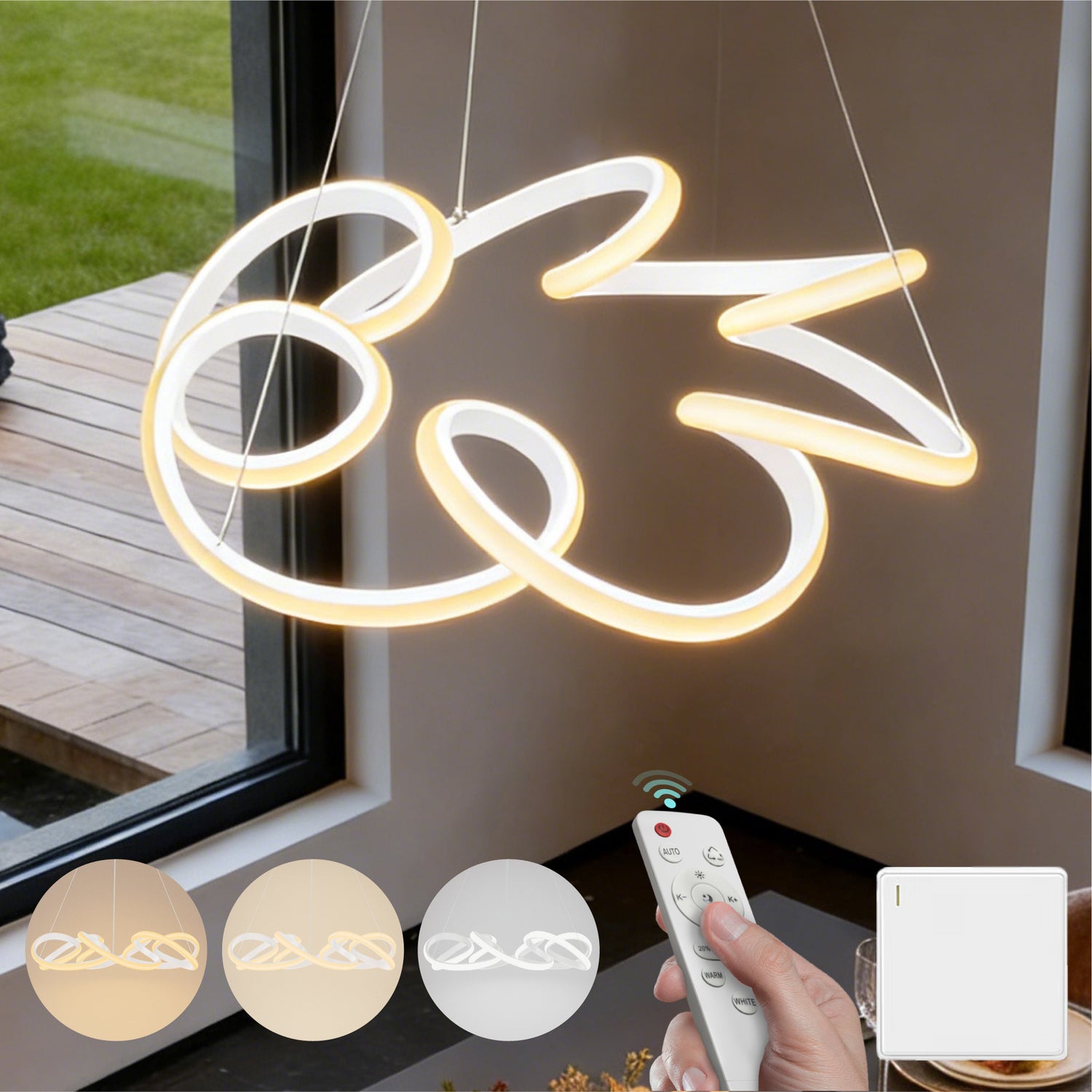 glasvilla Pendelleuchte Esstisch, 52cm LED Moderne Hängelampe Weiß, stufenlos dimmbar 3000K–6400K, höhenverstellbare Design 67W Esstischlampe mit Fernbedienung & Wandschalter, Alivetta25040