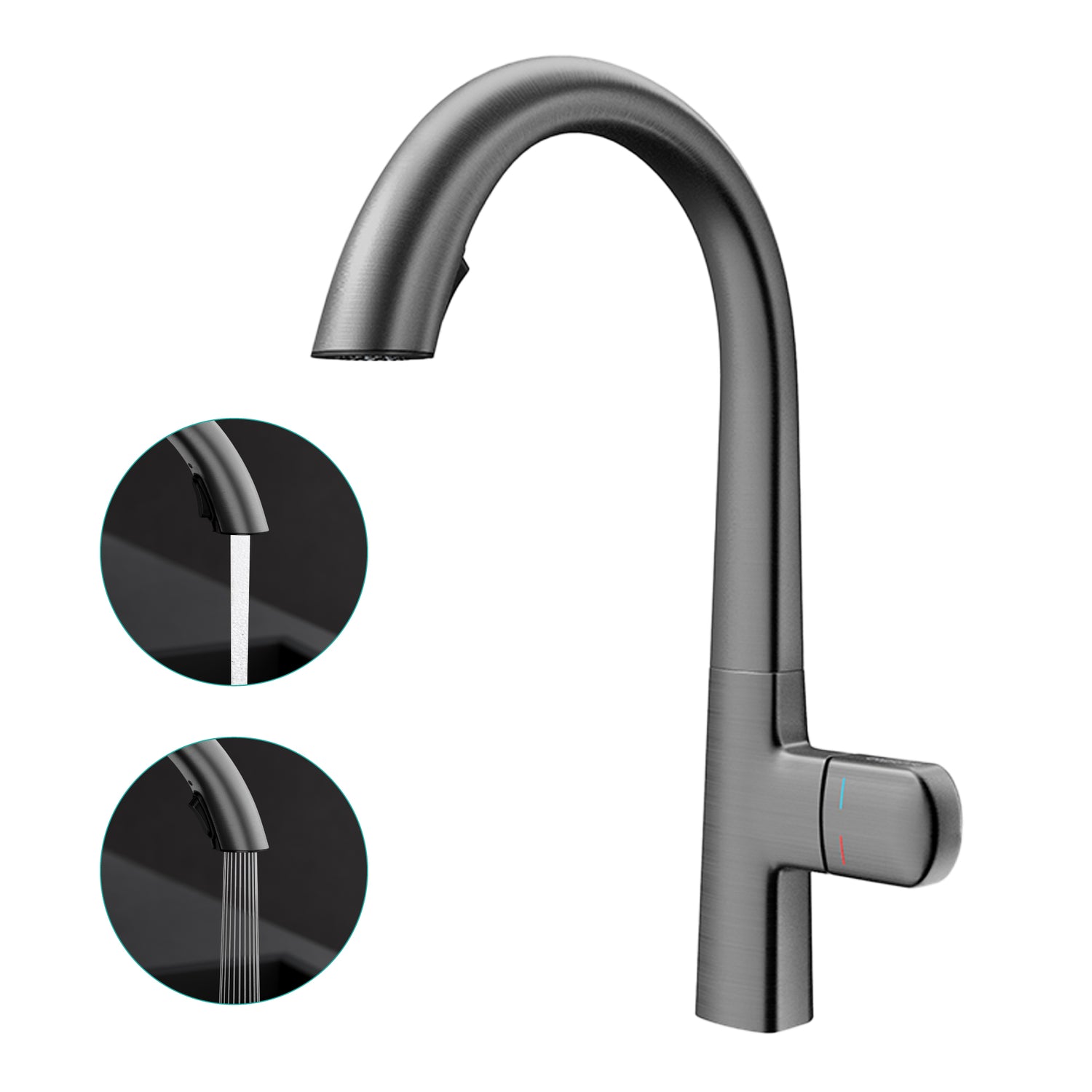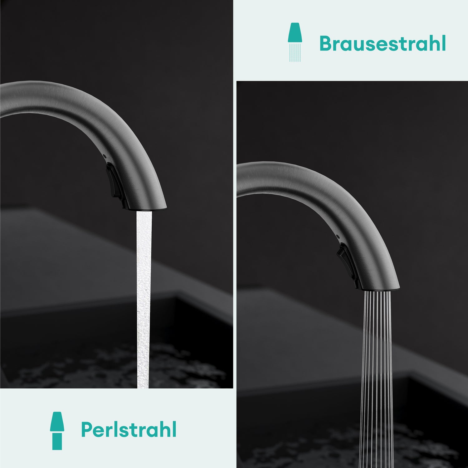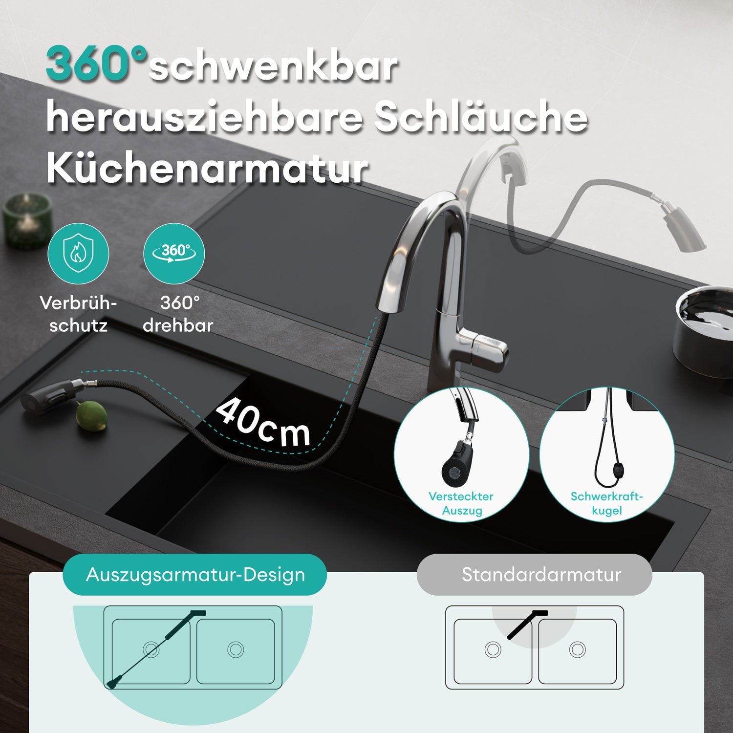 • Ducha extraíble: Con cabezal de rociado oculto y giratorio a 360°, que se puede extender hasta 40 cm, cubriendo así todo el fregadero o varias áreas sin esfuerzo