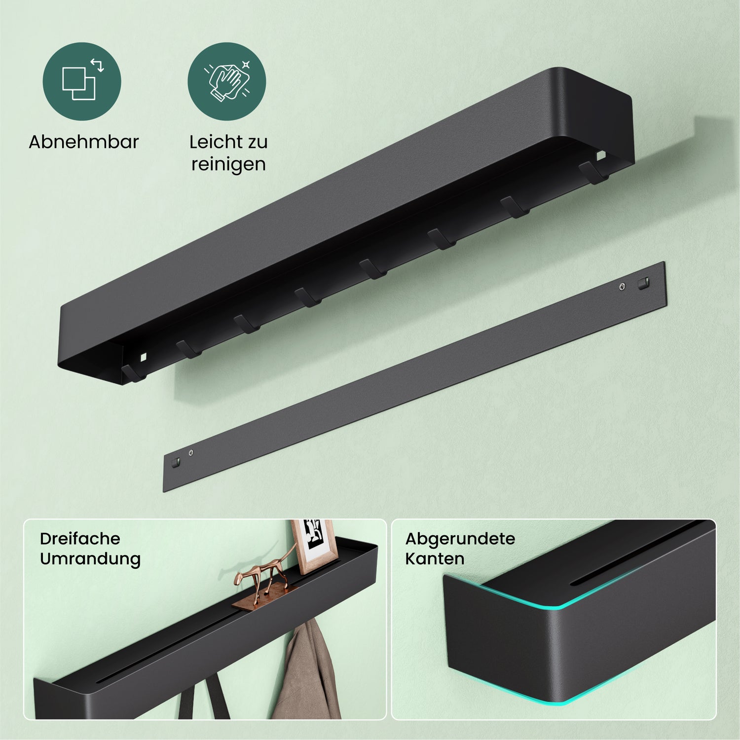- Flexible und einfache Montage: Wahlweise Klebemontage (bis zu 10 kg Tragkraft) oder Bohrmontage (bis zu 12 kg Tragkraft). Alle benötigten Montagematerialien, einschließlich starkem Spezialkleber, sind im Lieferumfang enthalten.